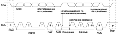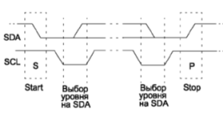 сигнала SDA из высокого уровня в низкий при высоком уровне сигнала SCL. Бит STOP формируется переходом SDA из низкого уровня в