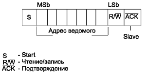 ведущим адрес. В состав байта адреса устройства входит бит направления передачи