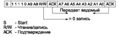 ведущий инициирует передачу данных, то сначала передается адрес устройства, к