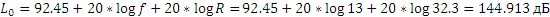 Рпр=43+34+34-141.165-0-0-2.544-0-2=-34.544дБм