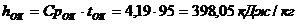 Энтальпию обратного конденсата определяем по формуле, кДж/кг