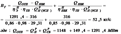 питательной воды, кДж/кгНР - удельная теплота сгорания топлива, кДж/кг;