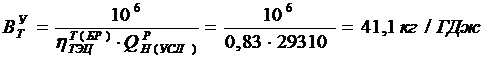 Удельные расходы условного топлива: