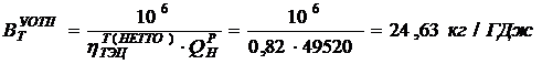 на выработку теплоты, кг/ГДж