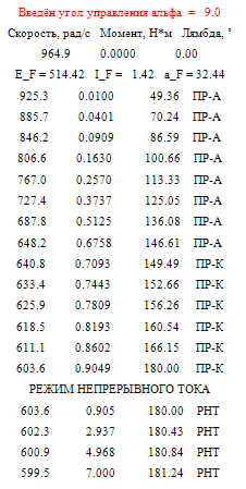 а затем вычисляется электромагнитный момент и скорость по формулам