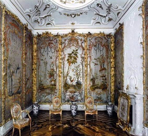 оформлении интерьеров загородных царских дворцов, примером чему служат