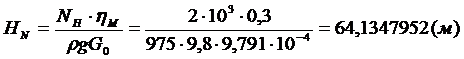 - напор насоса;