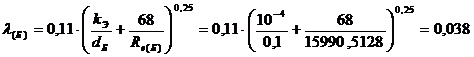Коэффициент гидравлического трения для блока: