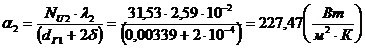 Коэффициент теплоотдачи от воды к стенке трубок: