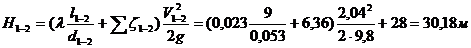 Найдем потери напора на участке 1-2: