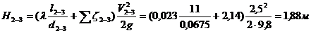 Найдем потери напора на участке 2-3: