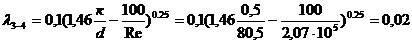 Найдем потери напора на участке 3-4: