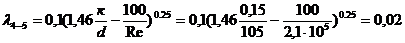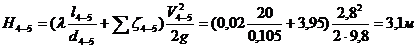 Найдем потери напора на участке 4-5: