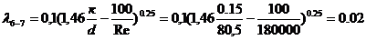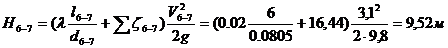 Найдем потери напора на участке 6-7: