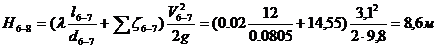 Найдем потери напора на участке 6-8: