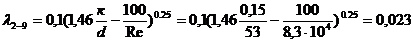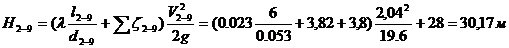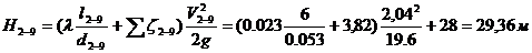 Найдем потери напора на участке 2-9: