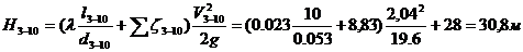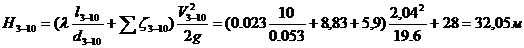 Найдем потери напора на участке 3-10: