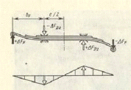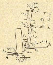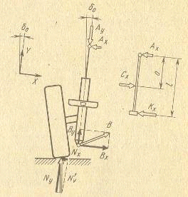 пружина смещена к колесу, то при этом возникает пара сил +Ау и -Fmin создающая дополнительный изгибающий момент. Однако эти силы не равны,