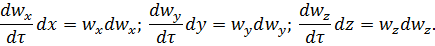 Движение жидкостей и газов характеризуется скоростями w и