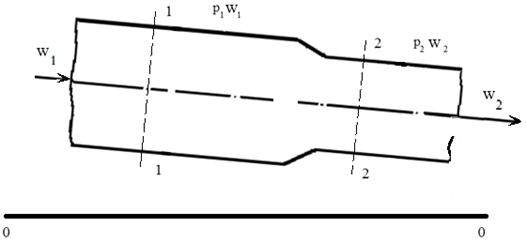 Пусть, например, жидкость движется в трубопроводе переменного сечения.