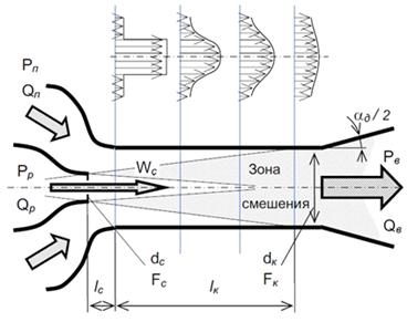 жидкость). Поток, вступающий в процесс смешения с большей скоростью, называется