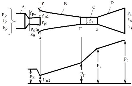 предельных противодавлений ab. Эжектор работает на допредельном режиме при