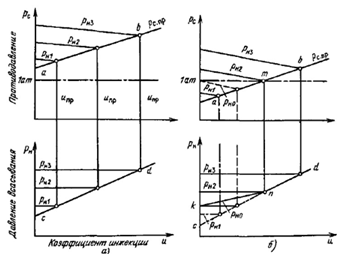 правило, имеет место случай 1, т. е. наклон линии фактических противодавлений рc = f (u) больше наклона линии предельных противодавлений. Последняя