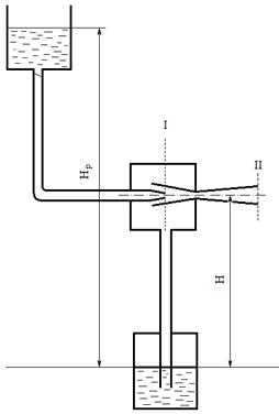 водоструйным насосом (рис.1). Высота подъёма H=3,8 м. Давление воды перед насосом ризб=1,9кгс/см2
