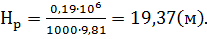 Напор рабочей воды перед насосом Hp: