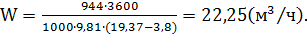 Расход рабочей воды составляет: