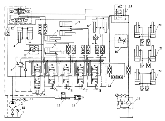 Рисунок 1. Принципиальная гидравлическая схема бульдозера,