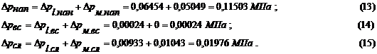 - потери давления в напорной, сливной и всасывающей гидролиниях
