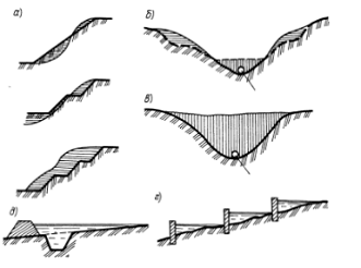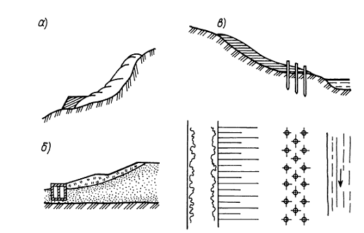 водосборном бассейне; отвод грунтовых вод; террасирование склонов для