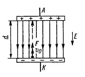 Рассмотрим движение электрона между плоскопараллельными