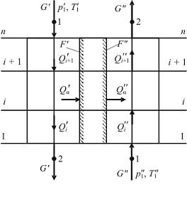 элементарного объема одномерного теплообменного аппарата, состоящего из двух