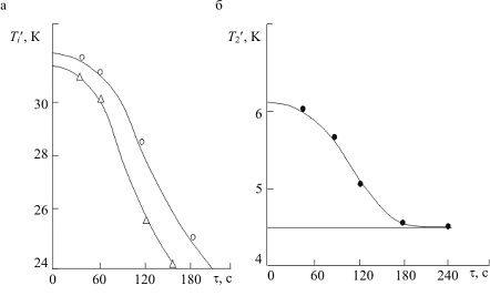 = 6 с и температуре от 3,75 до 3,77 К. Темп роста температуры за τраз