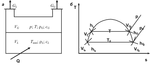 изменение давления пара р6 и температуры насыщенной жидкости TL = TG.