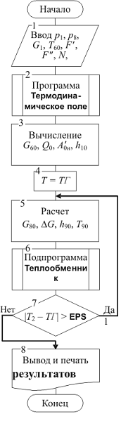 потока в основном теплообменном аппарате I и уменьшению удельной работы