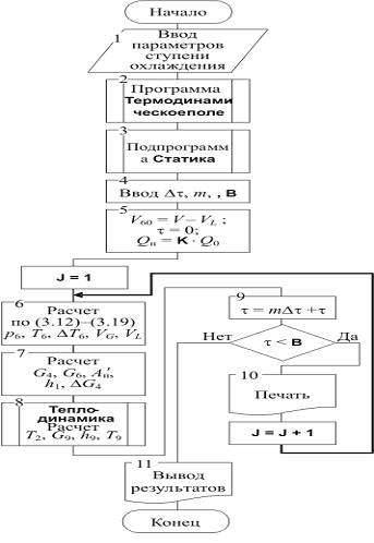 характеристик концевой ступени охлаждения при действии импульсных тепловых