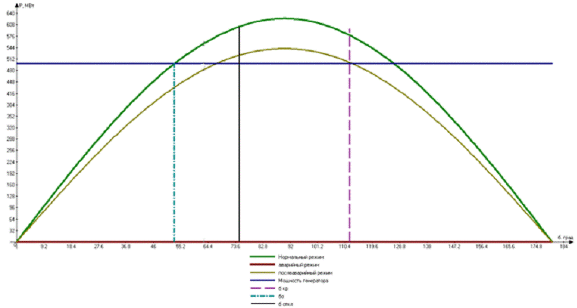переходных процессов в системе электропередачи, рассчитать предельное снижение