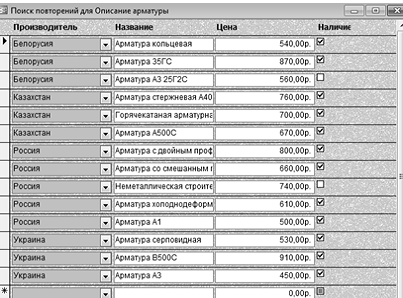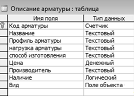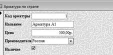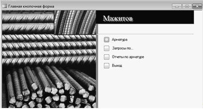 строительной арматуры: таблицы, запросы, формы, отчеты и главная кнопочная