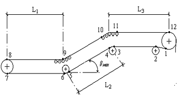 конструктивні і робочі параметри конвеєра, а саме:кут нахилу конвеєра та