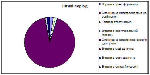 Рис 9.Секторна діаграма втрат електроенергії за літній період