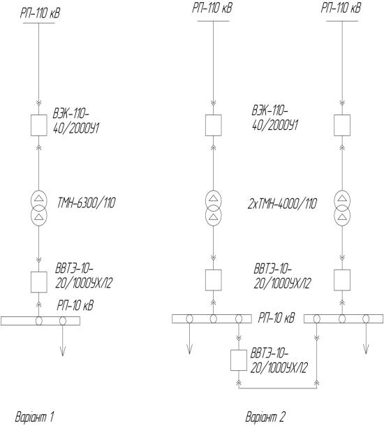 джерела живлення вибрана ГЗП 110/10 кВ з двома трансформаторами ТМН-4000/110.