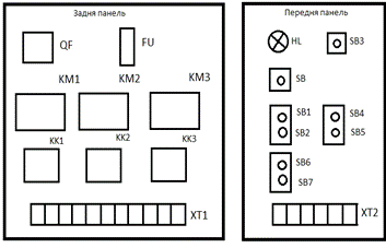 - сигнальна лампа; КК1, КК2, КК3 - теплові реле; XT1, XT2