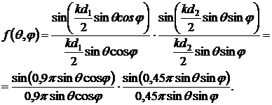расстояниями между излучателями при равных мощностях волн, излучаемых