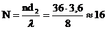 столбцов n=36. Расстояние между центрами соседних волноводов