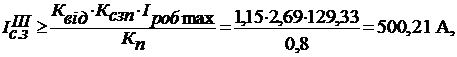 Струм спрацювання реле для МСЗ:
