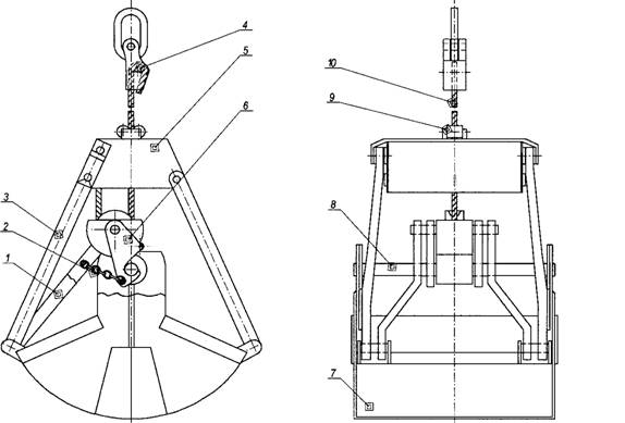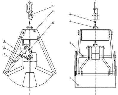 Одноканатный грейфер (рис 1.2.) содержит корпус