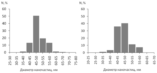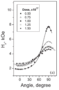 наночастицы кобальта, полученные при двух углах подмагничивания: 0 градусов и